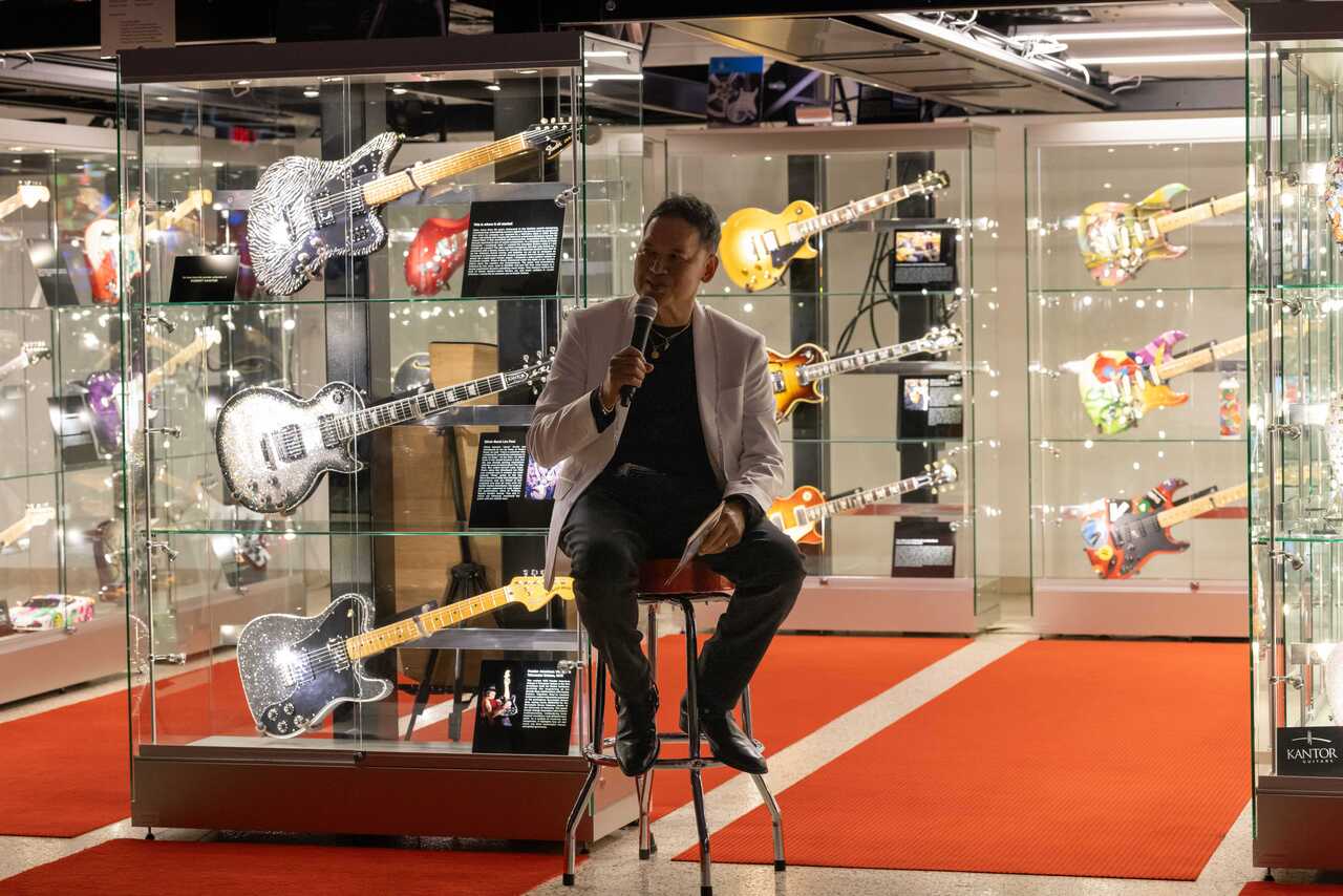 To celebrate, the AMCM hosted an invitation-only event for the unveiling of the Kantor Guitars display on Friday, November 7th. Friends of Kantor Guitars and the AMCM gathered for a live performance by Villins, followed by the grand reveal of the thirty-six guitar collection. With live music, tasty Urban Prime catering, and a champagne toast, it was an excellent way to celebrate Robert's tremendous contributions to the AMCM.