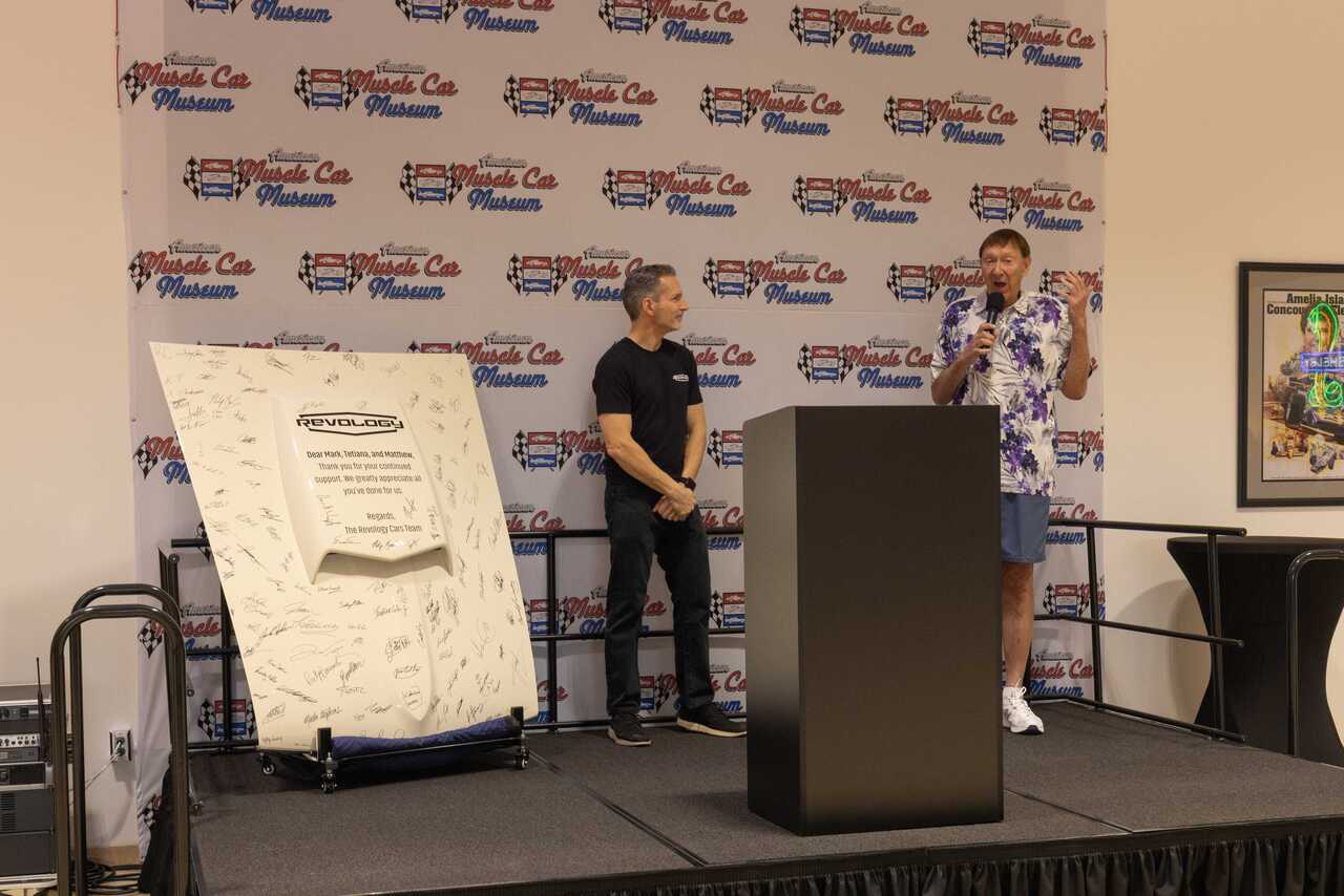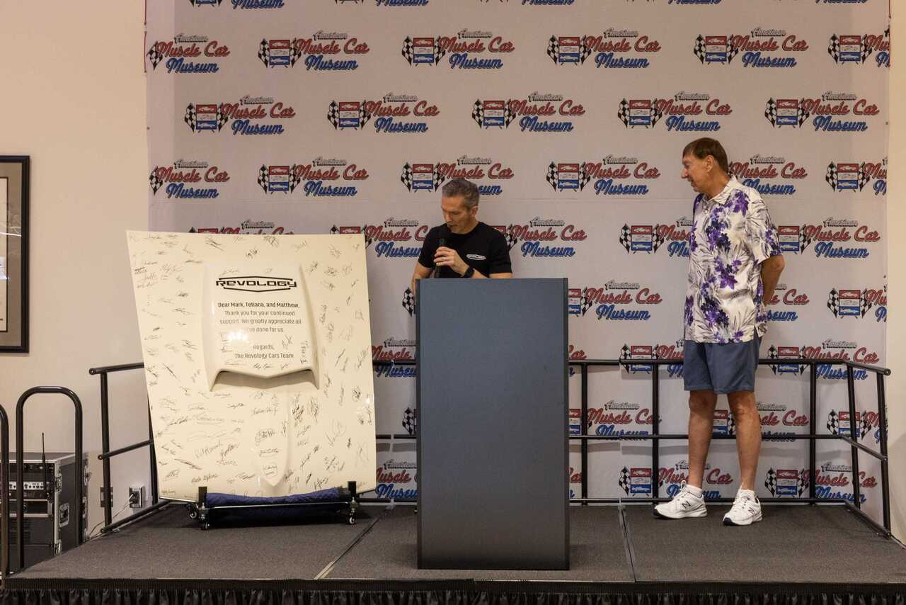 One nice part about the visit was AMCM's Mark Pieloch was presented with a Boss 429 hood signed by the employees of Revology. We will have this displayed proudly inside the museum going forward! Here is a look at their visit.
